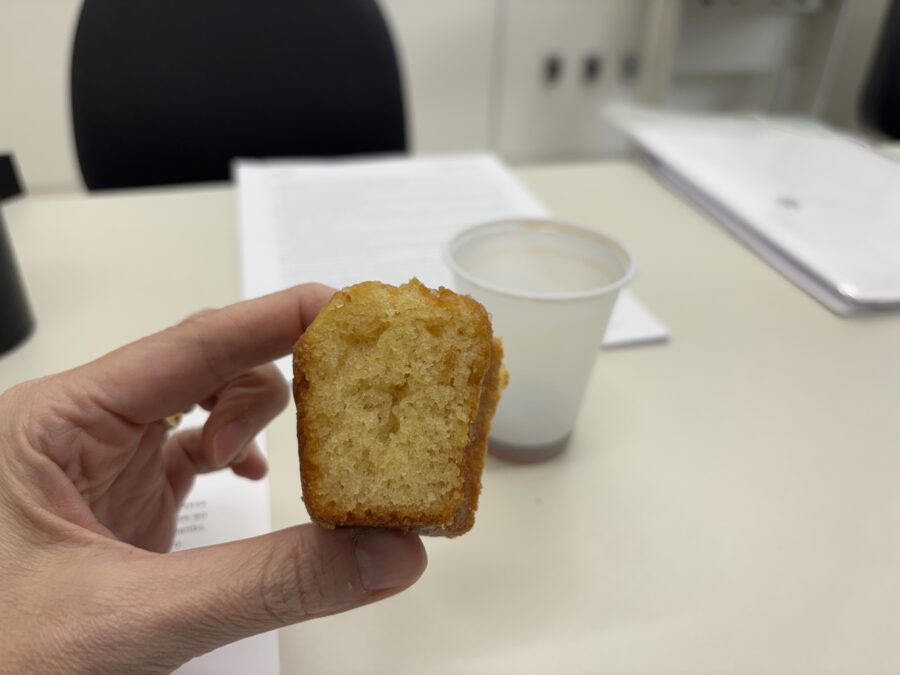 Dia 23 de julho. A turma fez um passeio a pé pela cidade e me trouxe pastel ontem. Eu congelei este aí e coloquei na airfrier hoje. Ficou perfeito.