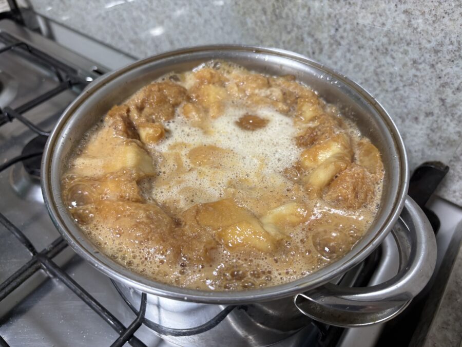 Depois cozinhe os pães em uma calda feita com 2 xícaras e meia de açúcar e um tico de baunilha. Se quiser, coloque canela em pau na calda.