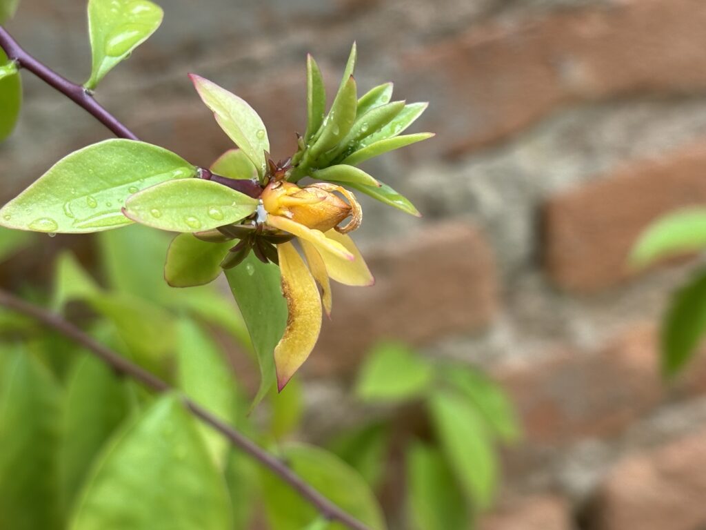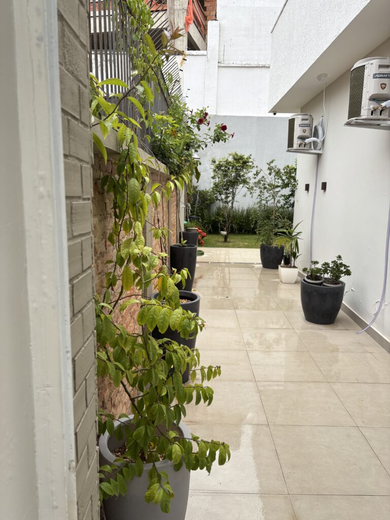 Nossa plantinha veio do interior. Eram 3 galhos. Aí, ela não tava muito legal, nós chamamos um jardineiro, que podou os galhos e colocou um fertilizante. Ela ficou assim.